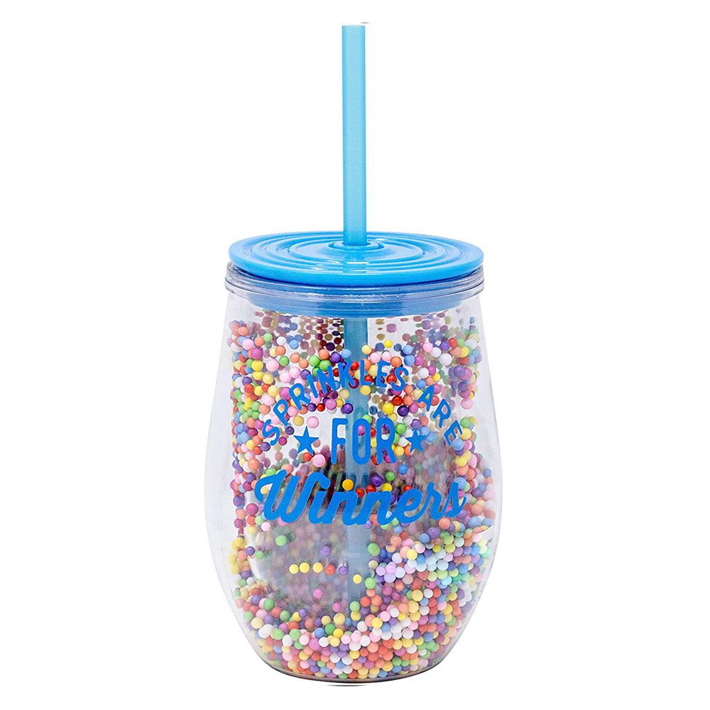 12オンスの青い蓋の泡の小さいボールのフラッシュの粉の二重のプラスチックのコップはストローの飲み物のジュースのコップの卵の形のコップがあります。