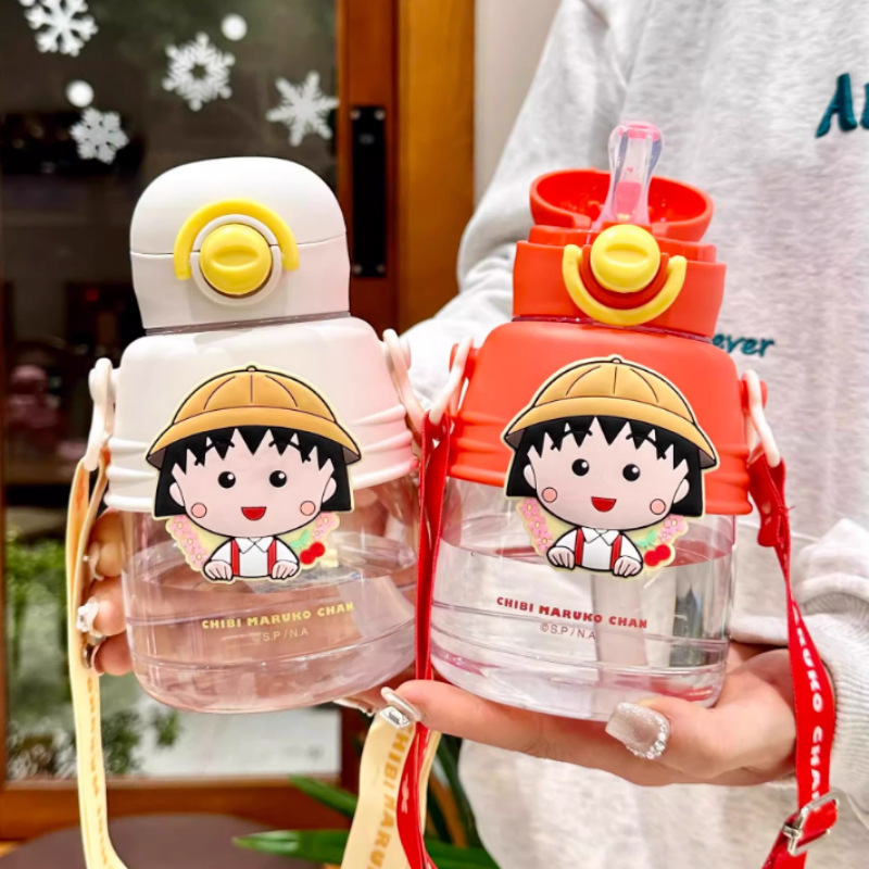 正規版ちびまる子ちゃんかわいいぬいぐるみプラスチックコップ耐熱ストローストラップ漫画子供学生プラスチックコップ