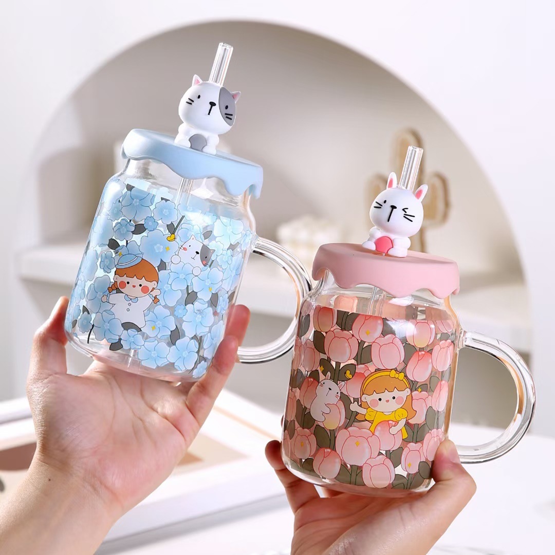 創意個性アニメ動物花公仔ストローコップ高顔値グラスお土産女子ネット赤カップ