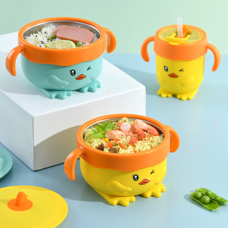乳幼児小黄鴨ストローカップ牛乳カップ赤ちゃん316ステンレス子供マグカップハンドル付き