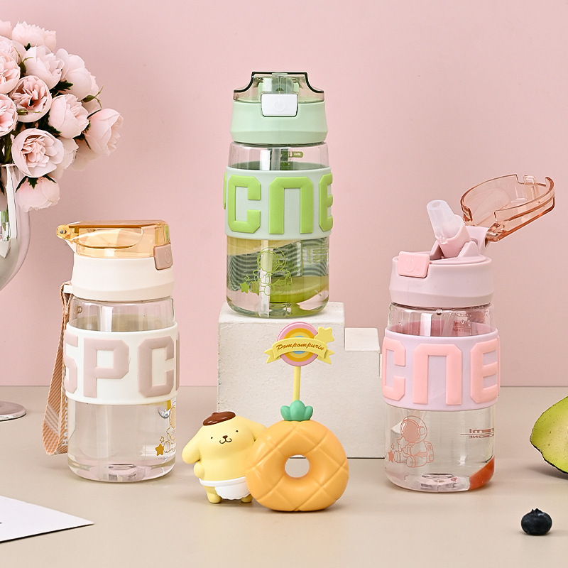 Tritan子供用コップ高颜値一杯三杯ストローコップ大容量携帯屋外斜めに学校のコップにまたがる