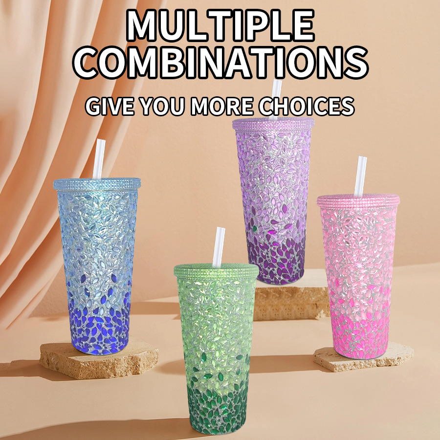 網紅高颜値皮草セットカップ携帯ストローグラス感水カップins風男女情