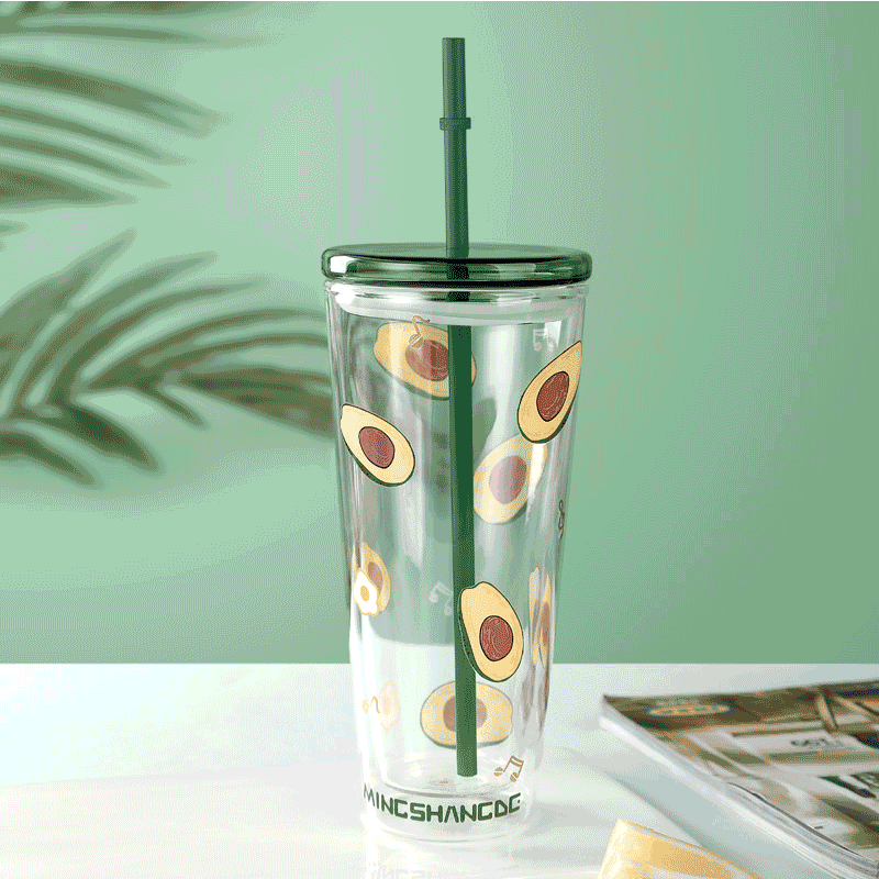 明尚徳二重ガラス水筒 蓋付きストローカップ ins風ガラスカップ 記念品カップ 卸売 ポータブル