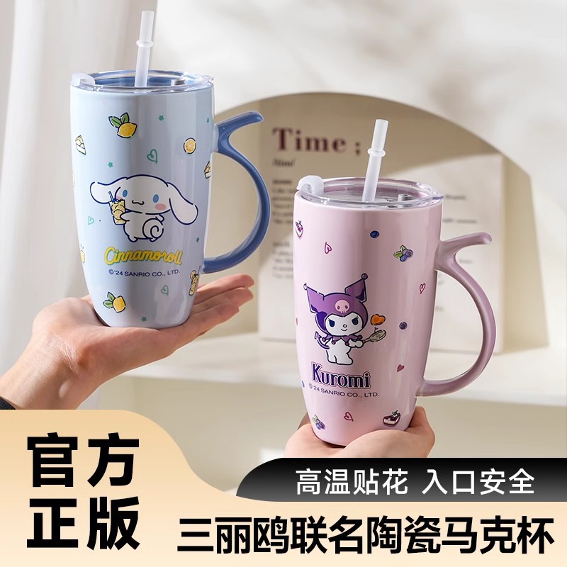 サンリオのかわいい高級感のある漫画風大容量ストローカップ(蓋付き)、カップルモデル、友達や親友への誕生日プレゼントに最適