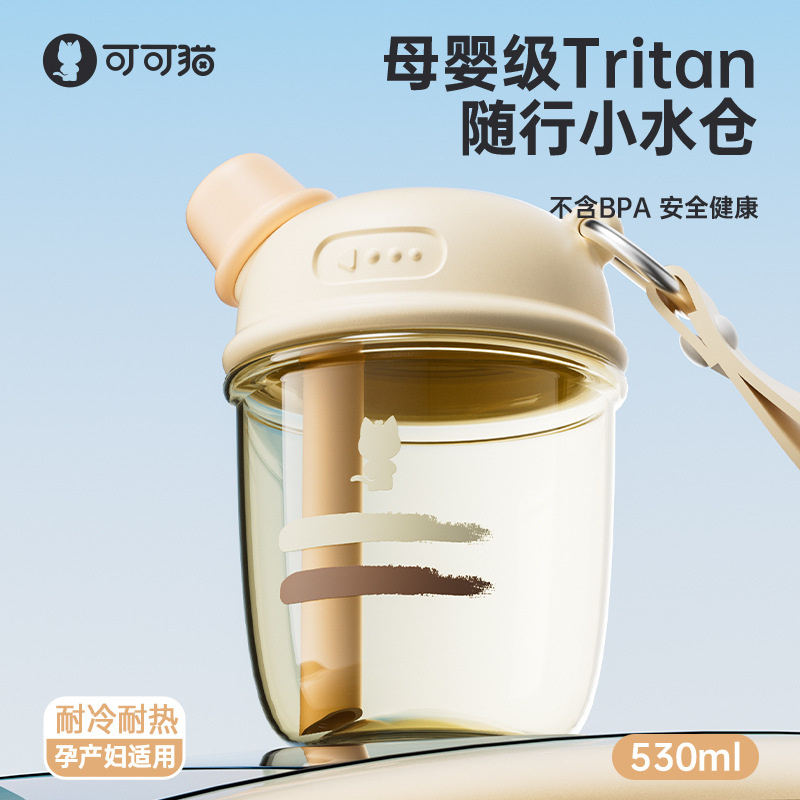ココア猫ストローカップ2025女子学生新高颜値スポーツカップ学生通学専用Tritanプラスチックカップ