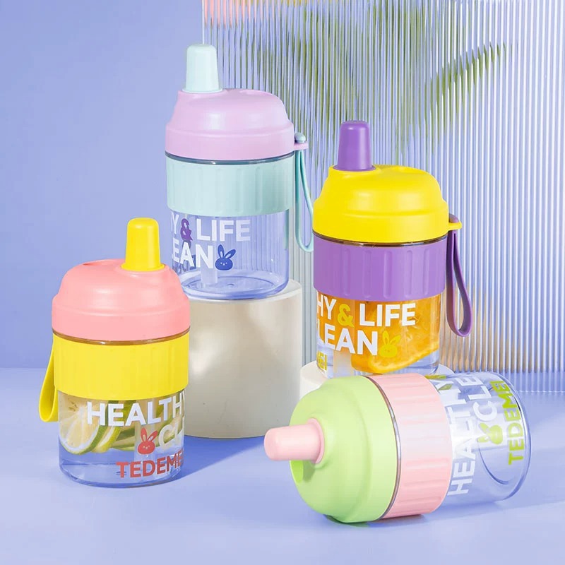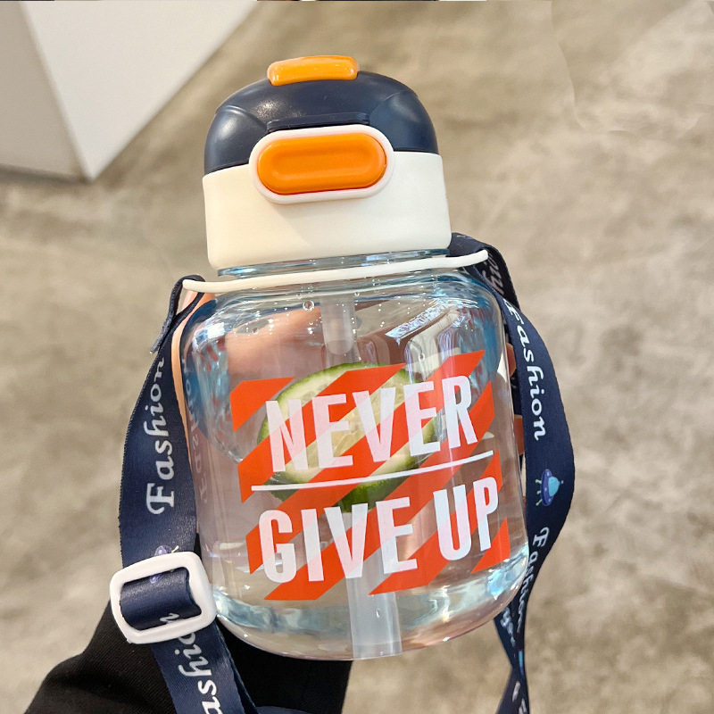 水筒男女学生高颜値夏携帯可爱い大容量ストロー子供用コップ斜め挂け饮み水筒