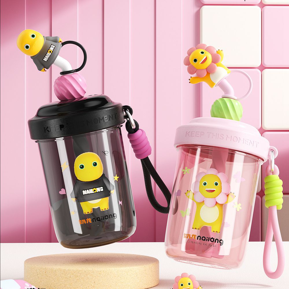 メーカー直販ファッションアウトドアスポーツプラスチックカップ食品級材質ストロー付き携帯アニメ学生カップ