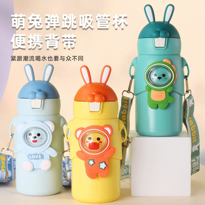 316ステンレス子供保温カップアニメかわいい学生ストローカップ高颜値斜め掛けバウンスカップ