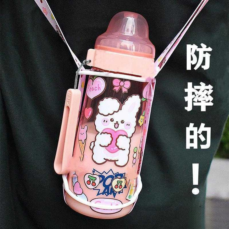 双饮拎拎壶大容量便携大肚子水杯卡通少女可爱水壶网红手提太空杯