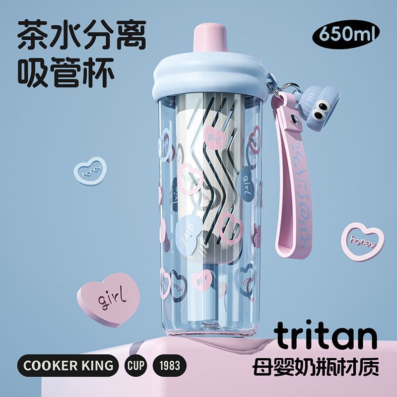 耐高温カップシンプル新型Tritanプラスチックストローカップ学生携帯茶分離プラスチック花カップ