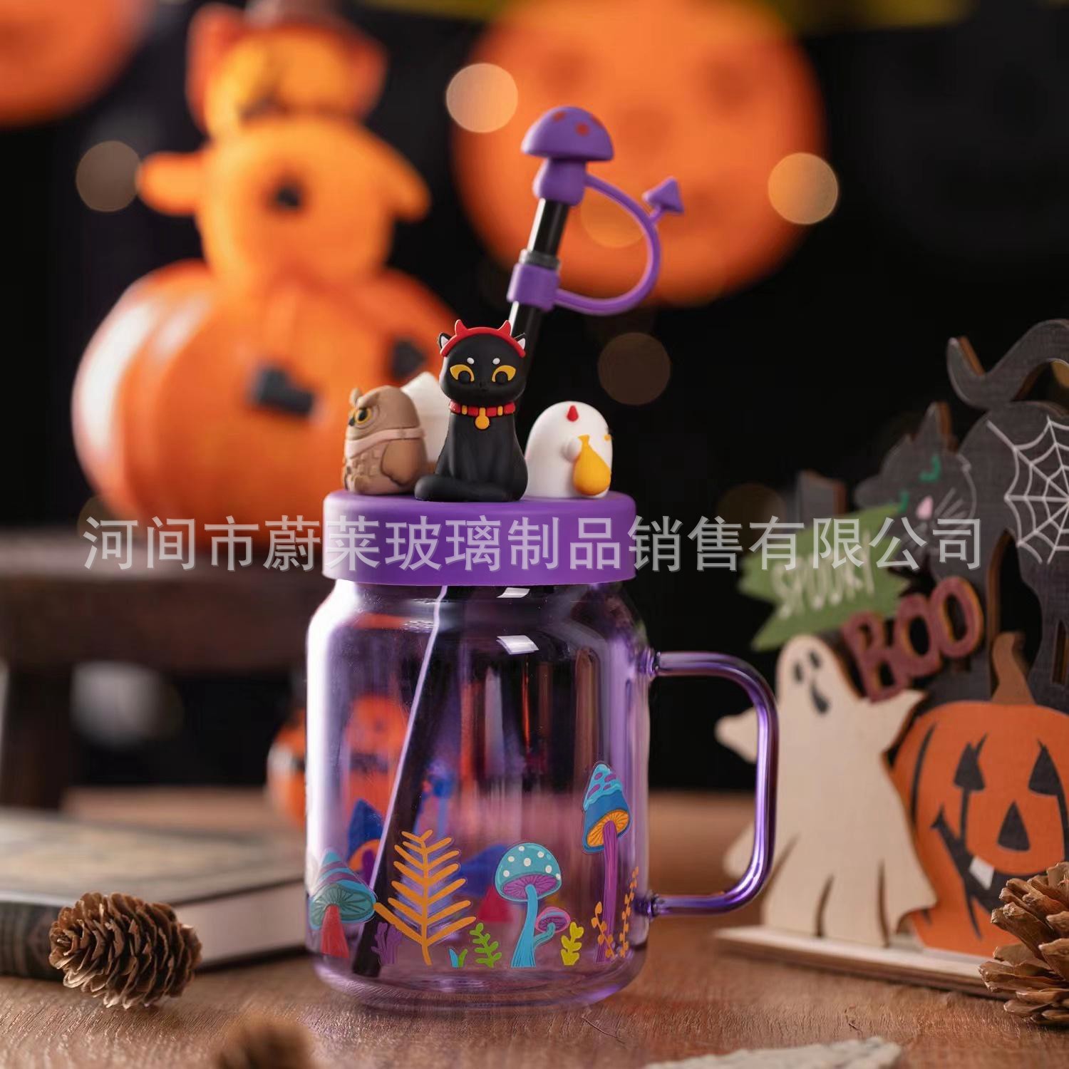 ハロウィンのクリエイティブで面白いエルフ柄のガラスストローカップ、ギフト用、大容量のドリンクカップ