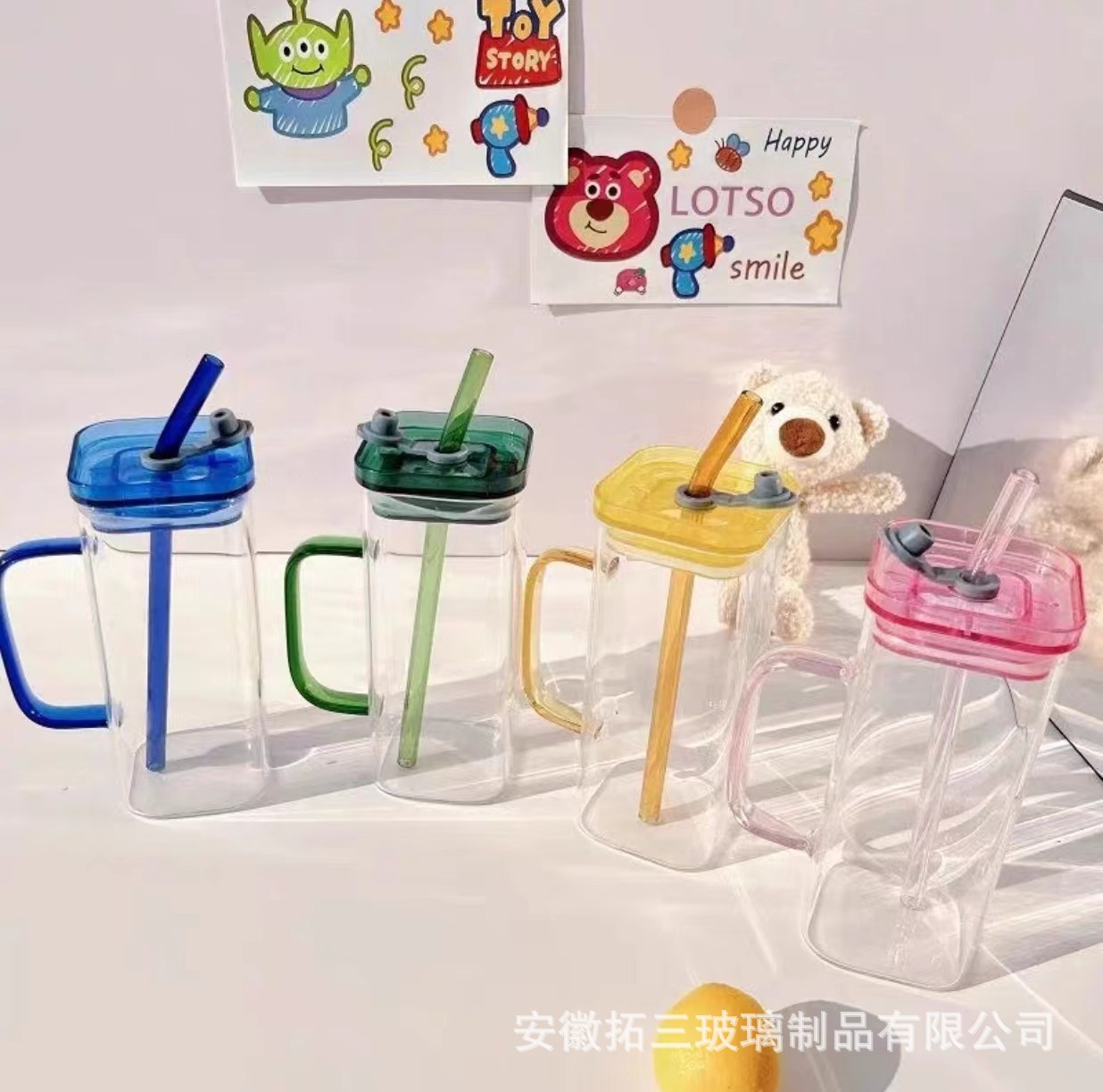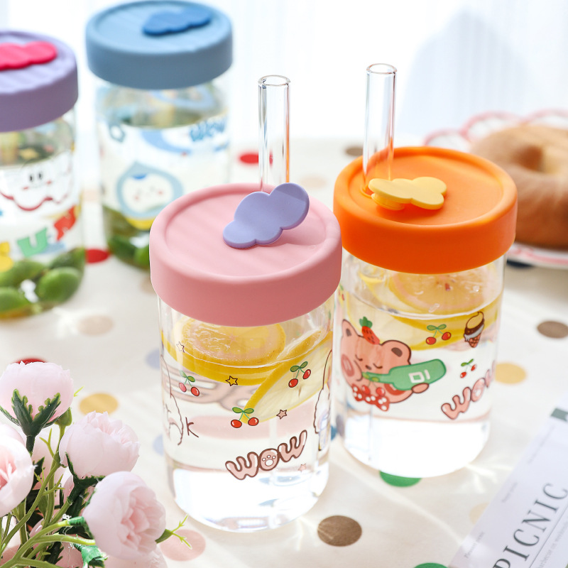 小容量漫画ストローカップインターネット有名人ガラスポータブルかわいいシェーカーカップストローカップジュースミニ