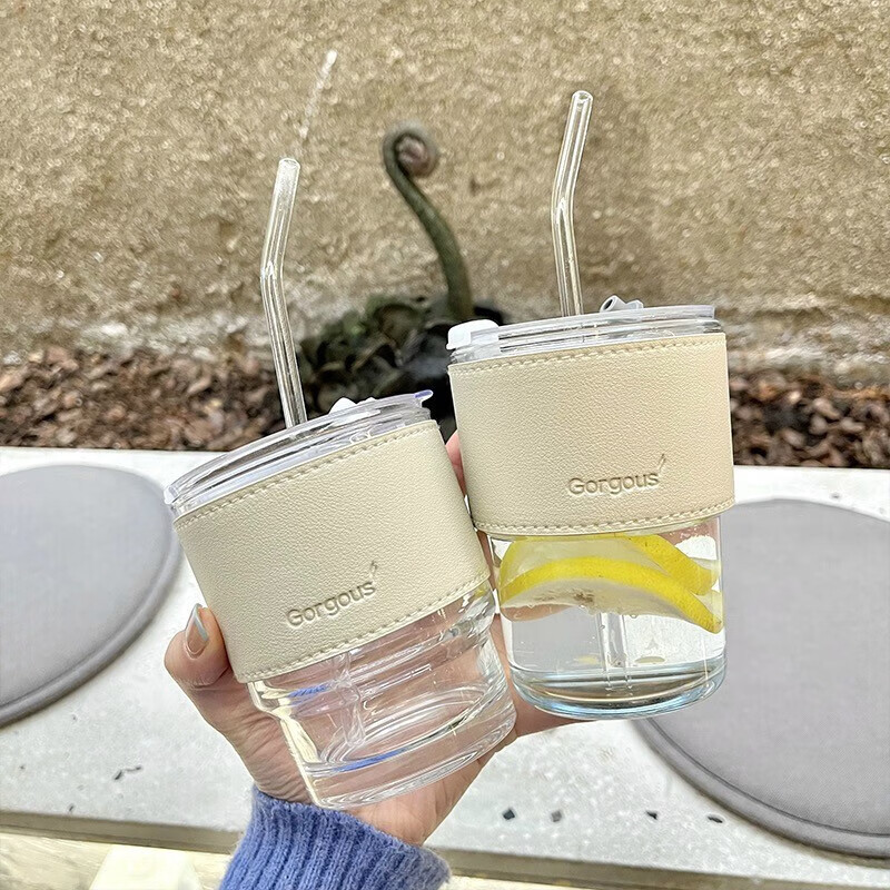 高颜値ミニトンカップ子供小型グラスシンプル携帯ストローカップ玉桂犬ガラスカップ