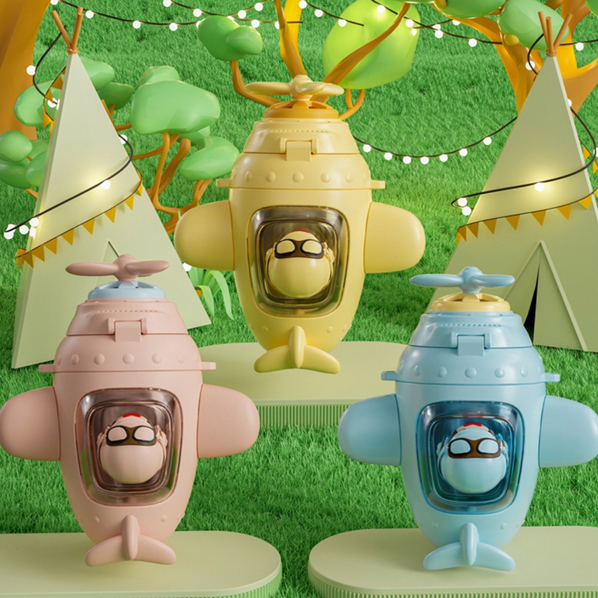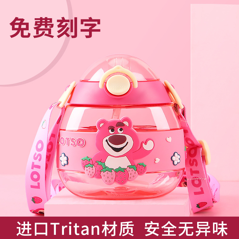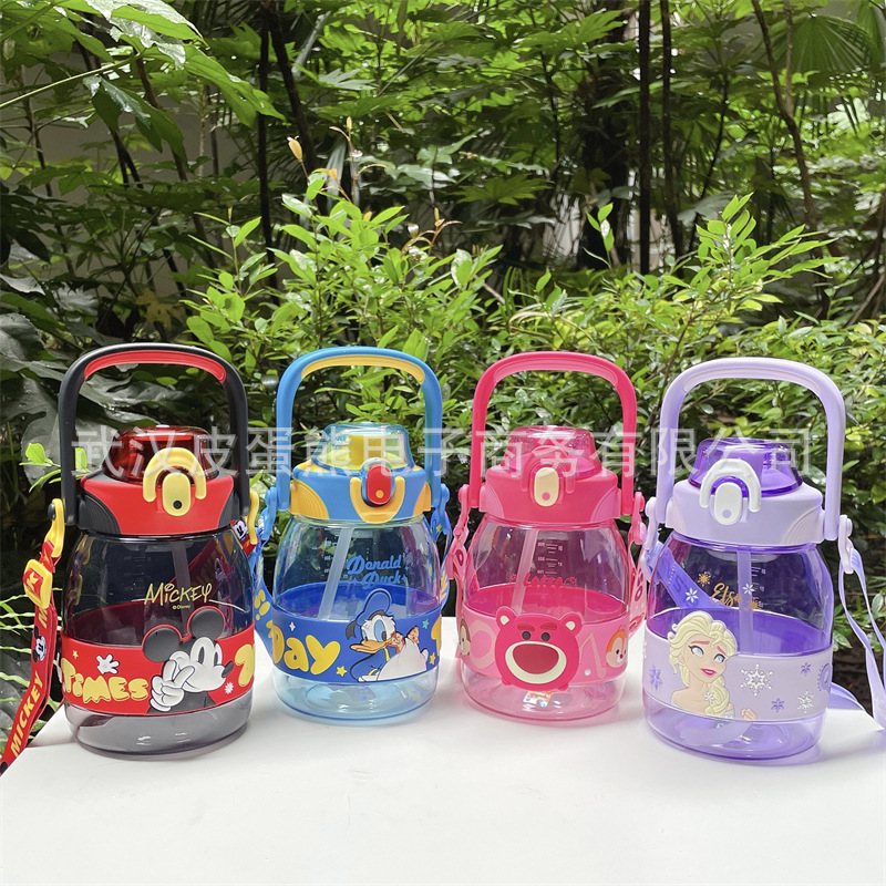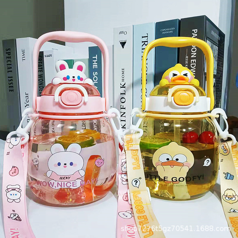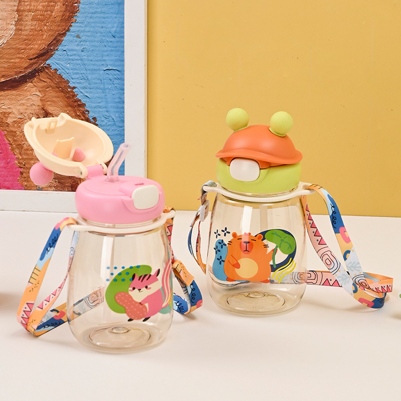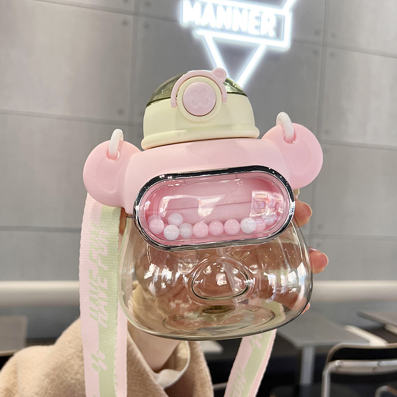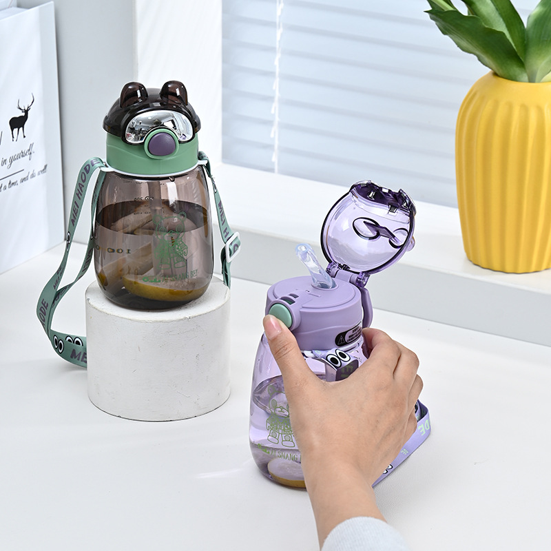 大容量新型プラスチック創意子供ストラップ水筒幼稚園学生可愛い熊ストロー水筒水筒