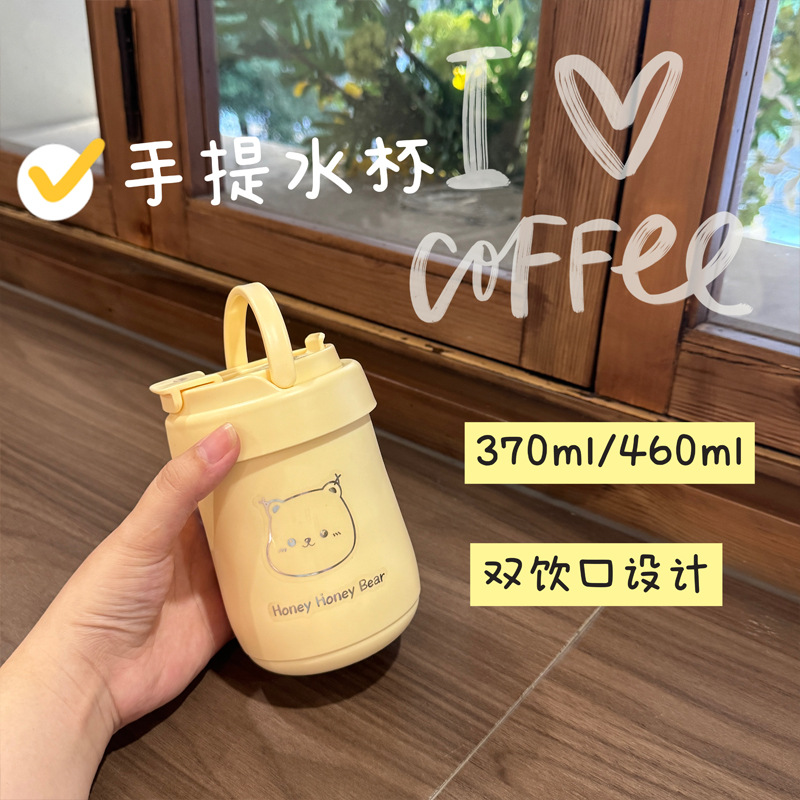 魔法瓶カップストロー付き女の子高見えウォーターカップポータブルコンパクトkt猫パチャ犬ハンディカップ子供用カップ