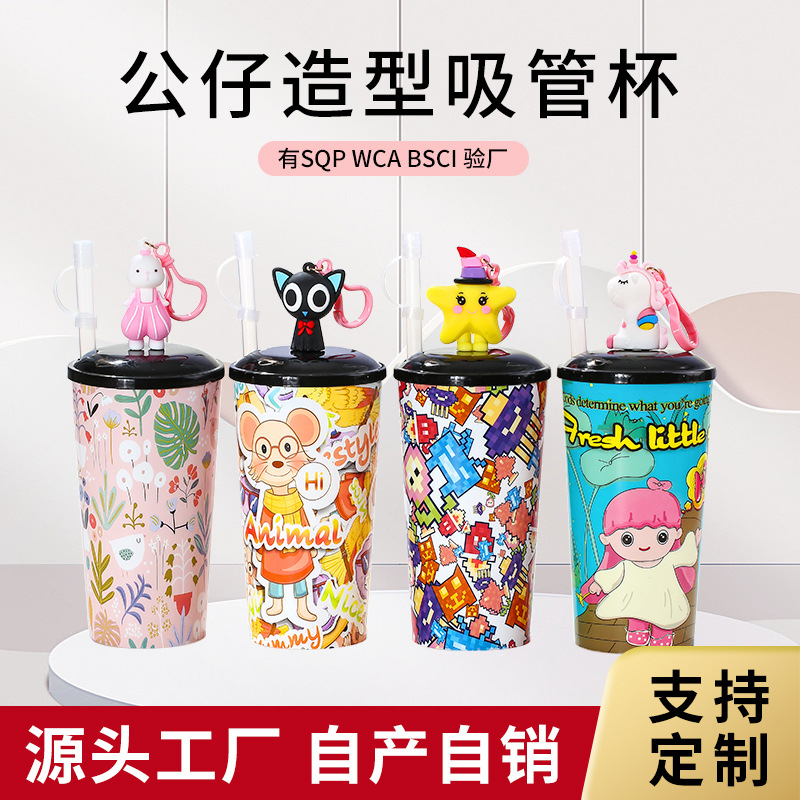 メーカー直販各種アニメ動物公仔ストローカップpp 550mlストローカップ哺乳瓶パンダユニコーン