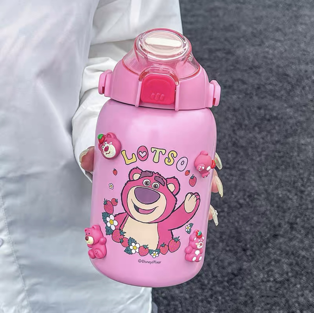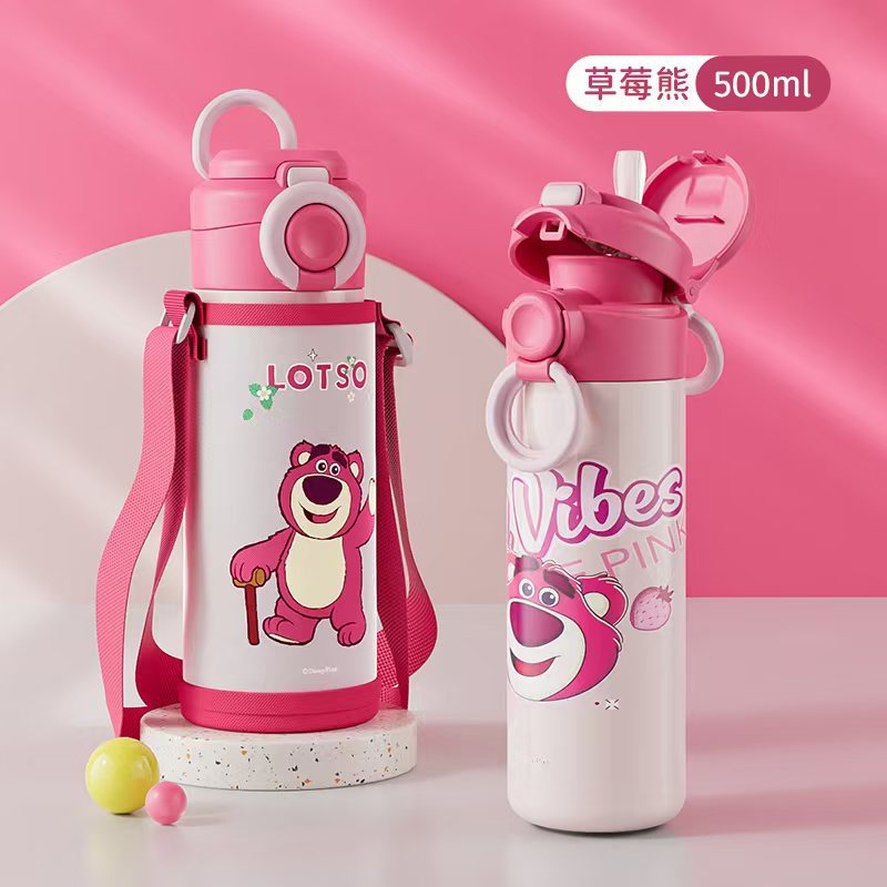 ディズニー大容量ダブルドリンクカップ夏アウトドア旅行スポーツカップ学生用いちごベアストローカップ付き