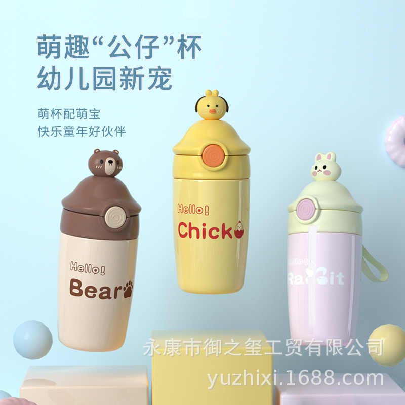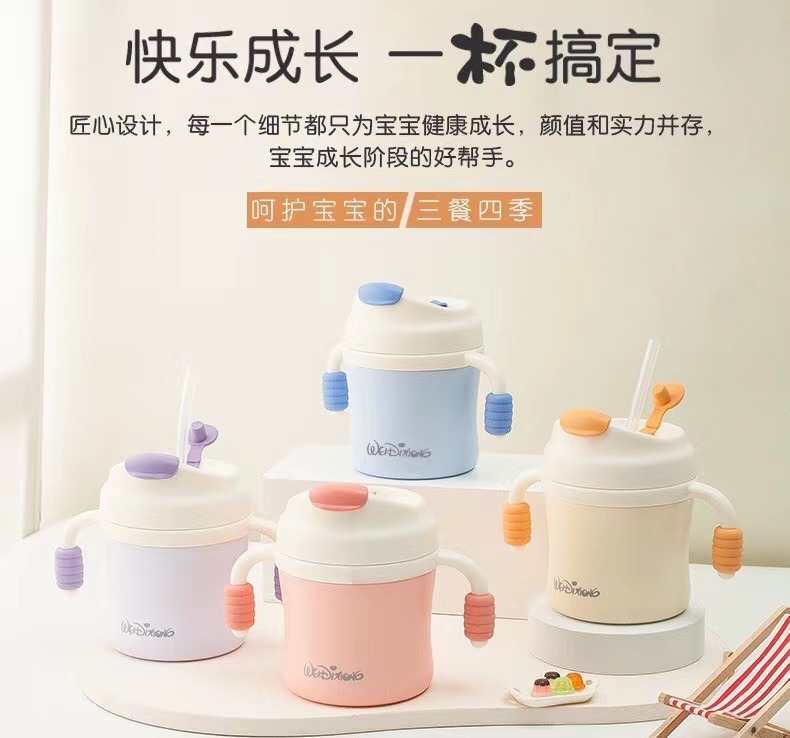 2022新型子供保温カップ二重コップ保温保冷男女高颜値韓国版ストローコップ