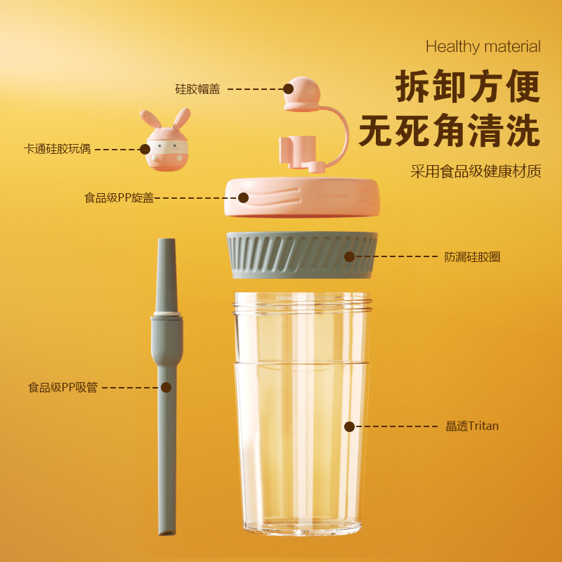 ネット赤公仔ストローカップ女子超萌え高颜値携帯かわいいコップ子供ジュース牛乳攪拌コップ