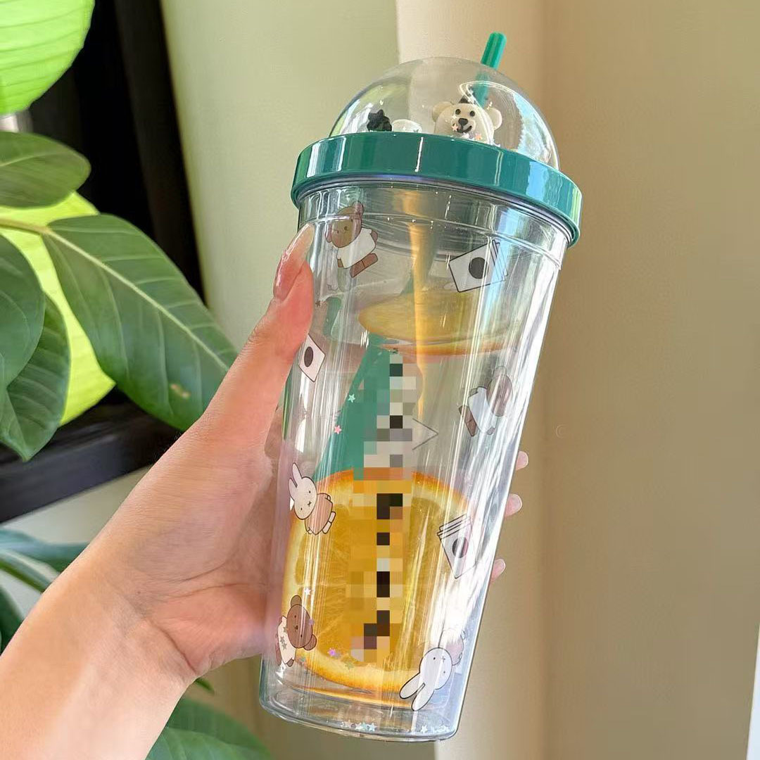 アニメ二重コップ夏ネット赤ストローカップ2024新クリエイティブギフトプラスチック人形吸水カップ