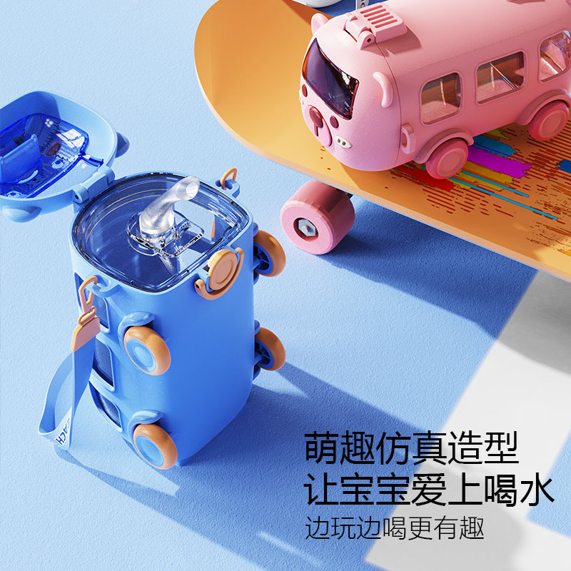 新型赤ちゃんバスコップ高颜値子供ストローコップ屋外携帯ストラップ付き小型自動車玩具コップ