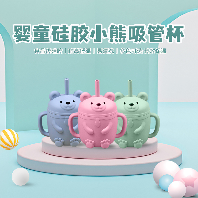 熊のシリカゲルのストローのコップの赤ちゃんはコップのシリカゲルを飲んでコップの子供の金を飲むことができます。