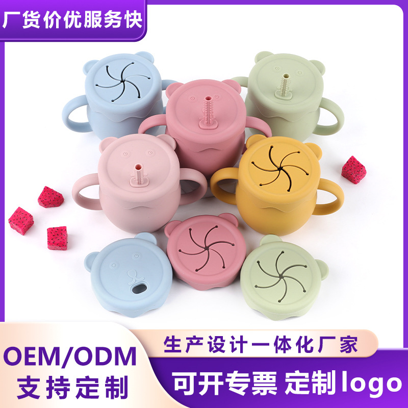 子供用シリコンカップ食品級蓋付きスナック両用カップ