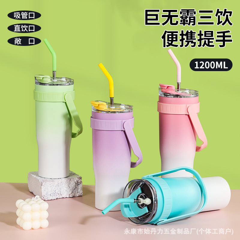 アマゾン40オンスステンレス自動車カップビッグマック大容量ポータブルカップ真空ストロー付き保温カップ卸売り