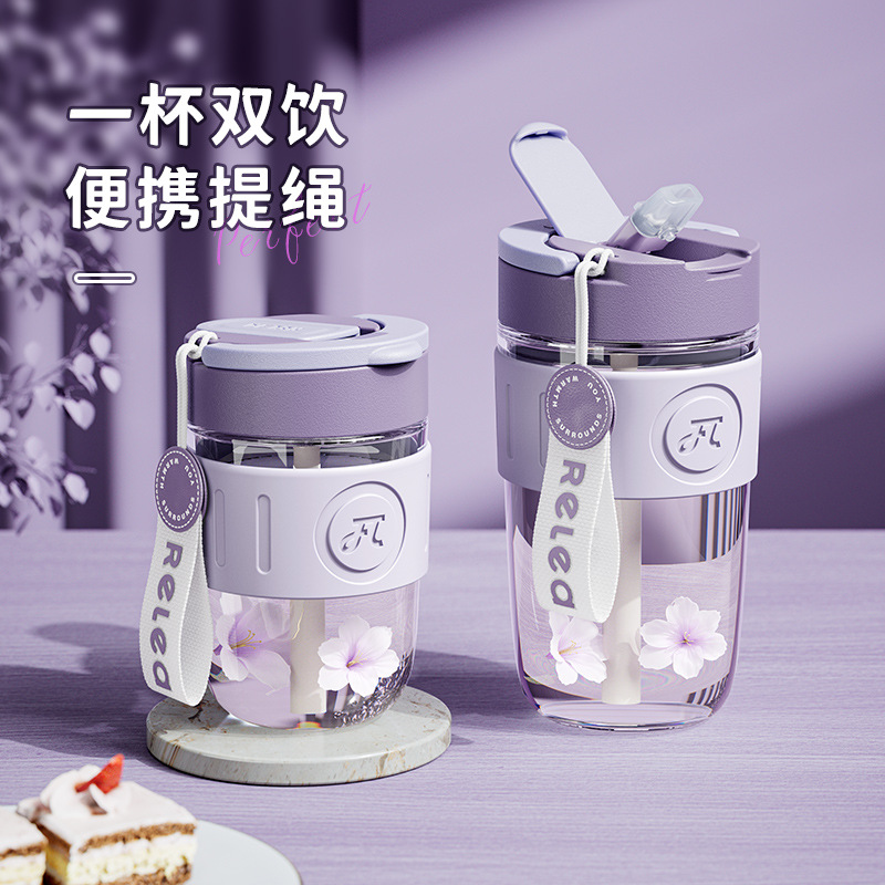 ダブルドリンクプラスチックカップパーマ防止シリコンコーヒーカップ高颜値ストローカップ携帯ネット赤クリエイティブカップ