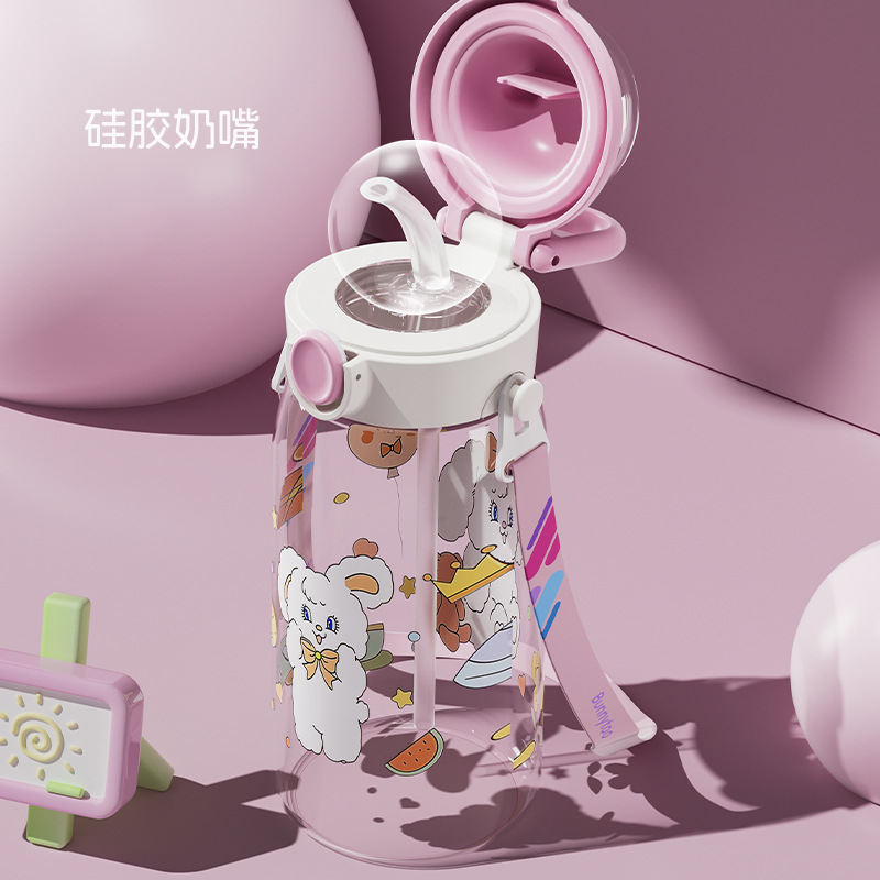 新しいコップの漫画のウサギのプラスチックのコップの幼稚園のストローのコップの小学生の子供のかわいい女性の夏の水筒