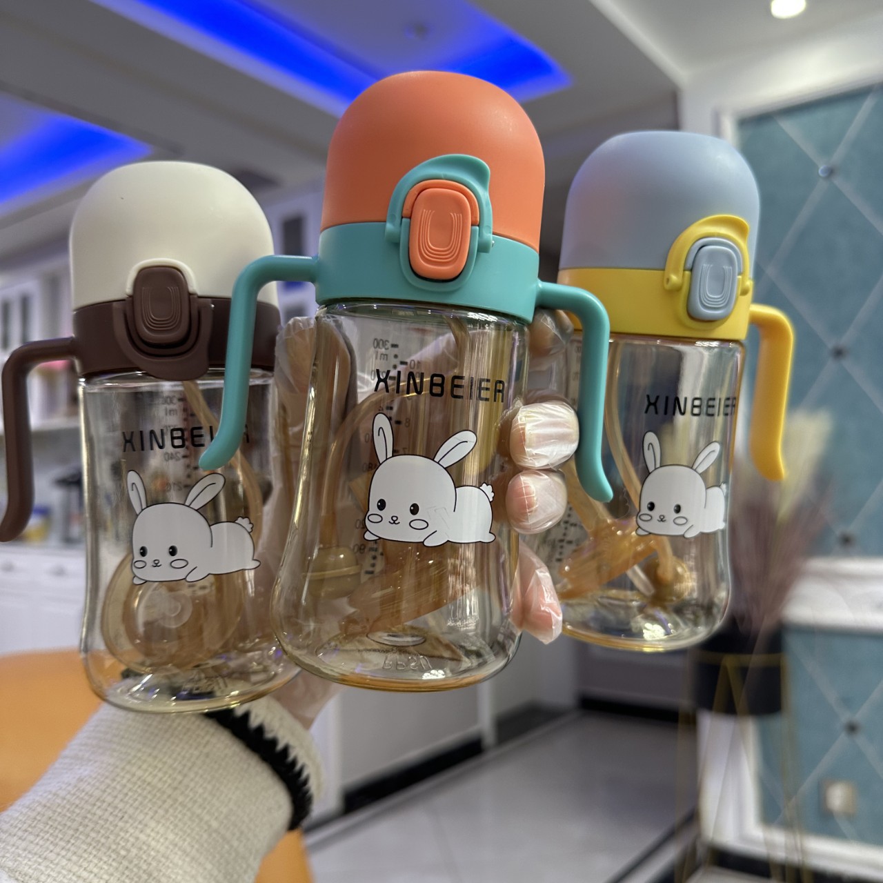 創意子供のプラスチックカップと水筒を持っています。幼稚園の学生の可愛い水コップのウサギのストローカップ2025新型です。