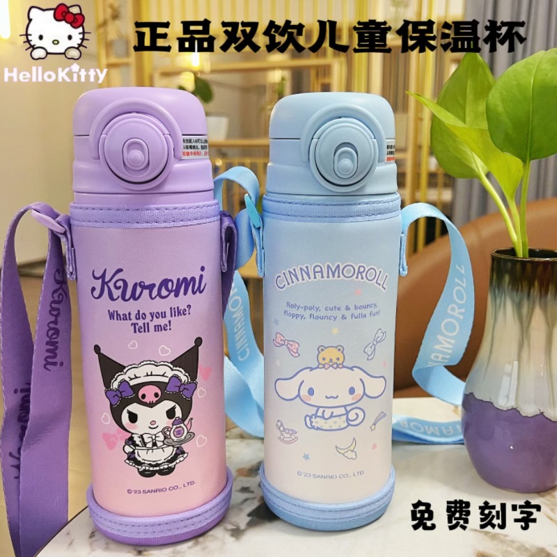 サンリオ大容量子供用保温水筒、ストロー付き、高見え、蓋2WAY、学校用水筒、卸売、越境で人気商品