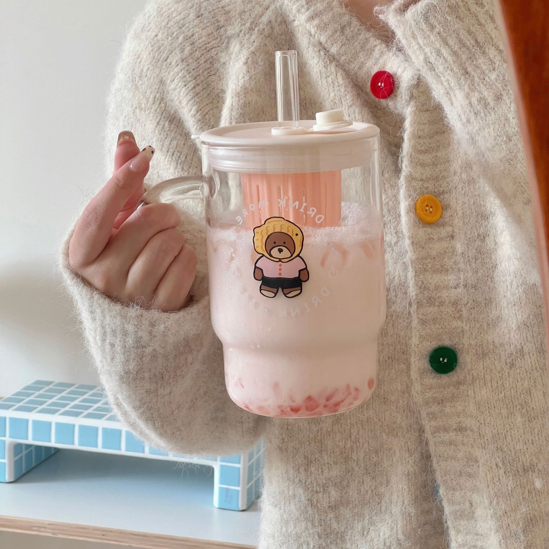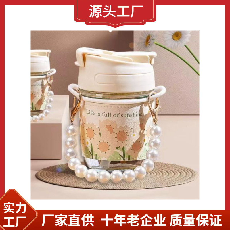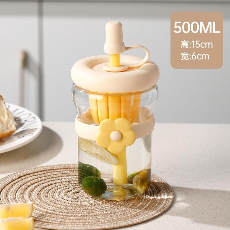越境ins風大容量ガラスストローコップ少女心コップ学生はコップを飲んで卸売りします。