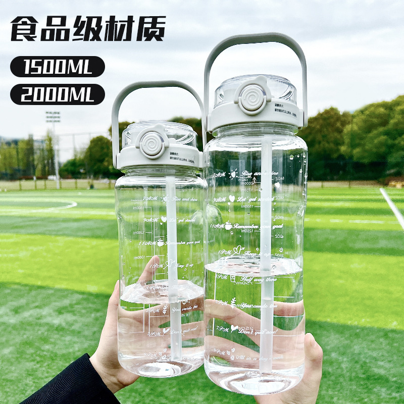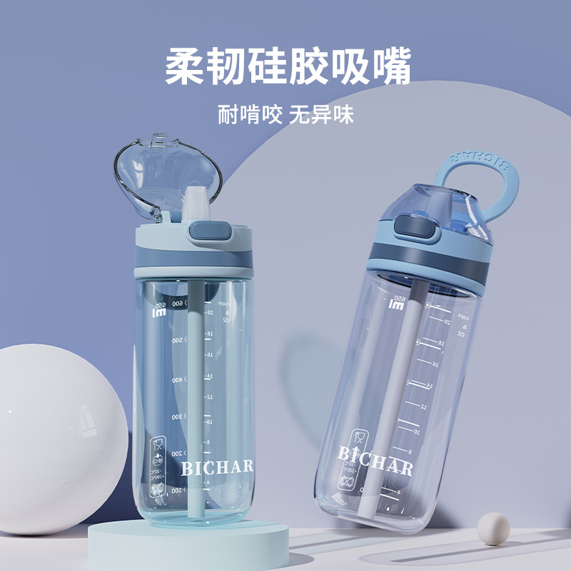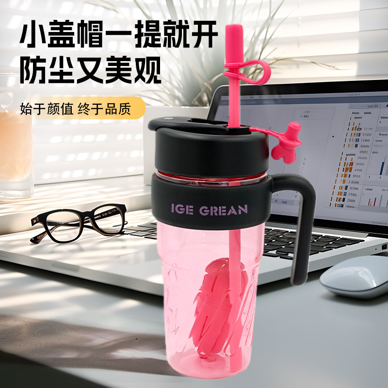 夏の新型ダブルストロープラスチックカップ高颜値大容量男女アウトドアスポーツ携帯カップ