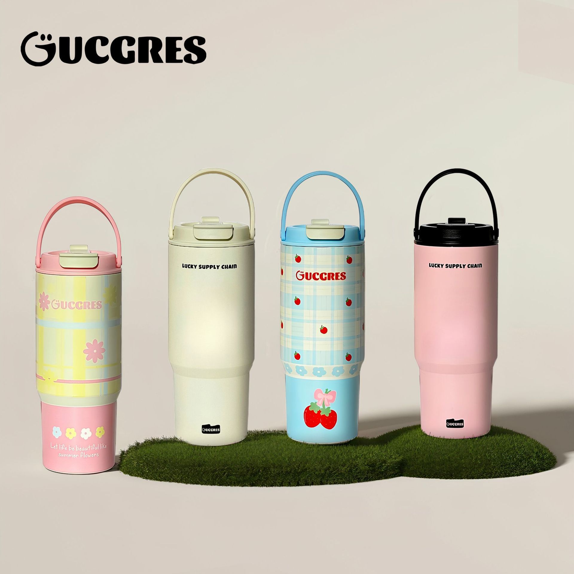 見栄えの良いハンドル付きアイスカップ、シンプルな大容量ウォーターカップ、車用魔法瓶カップ、ストローカップ、インスタイル保冷カップ