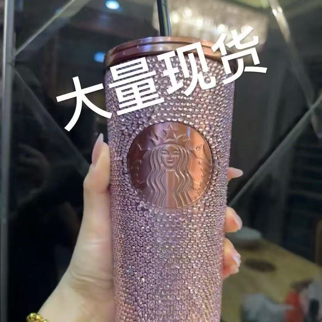 在庫ありスターダッドリサダイヤモンドストローカップラインストーンフラットカバーウォーターカップ 304 二層ステンレス鋼ストローカップコーヒー