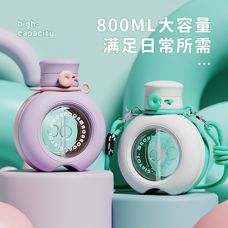 夏の高颜値の新型ストロー付きプラスチックカップのアイデア男女小学生のアウトドアスポーツ携帯カップ