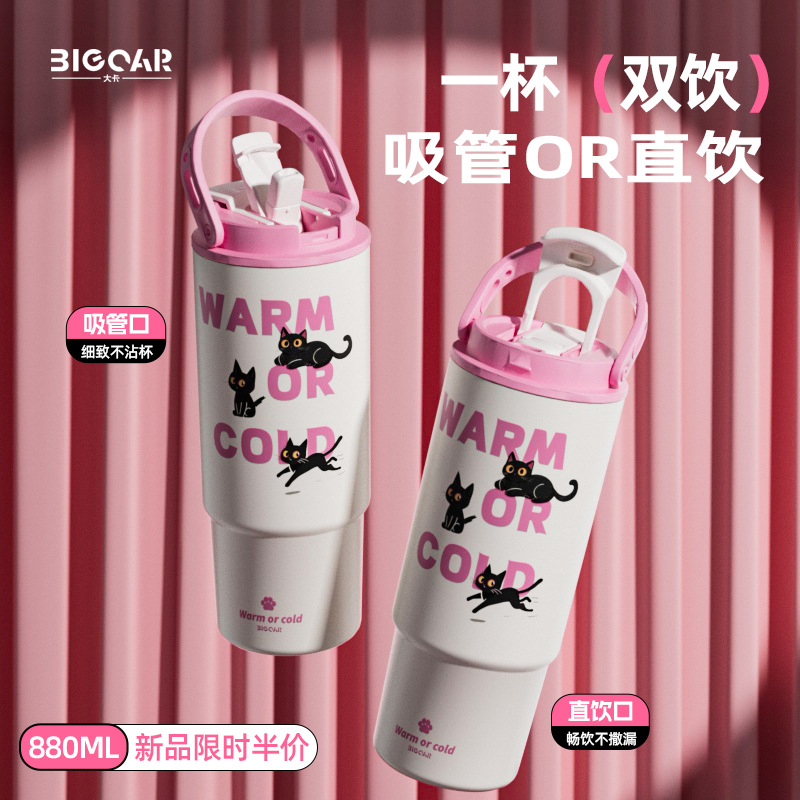 ビッグマック保温カップストロー氷覇カップ900ml大容量女子高颜値オフィス車載旅行カップ