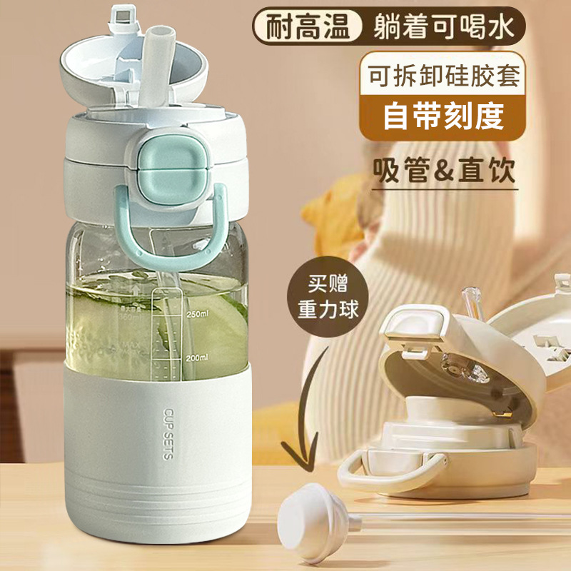 かわいいストローカップ高颜値ガラス内胆水カップ高颜値小団子水カップ斜めに携帯水カップにまたがる