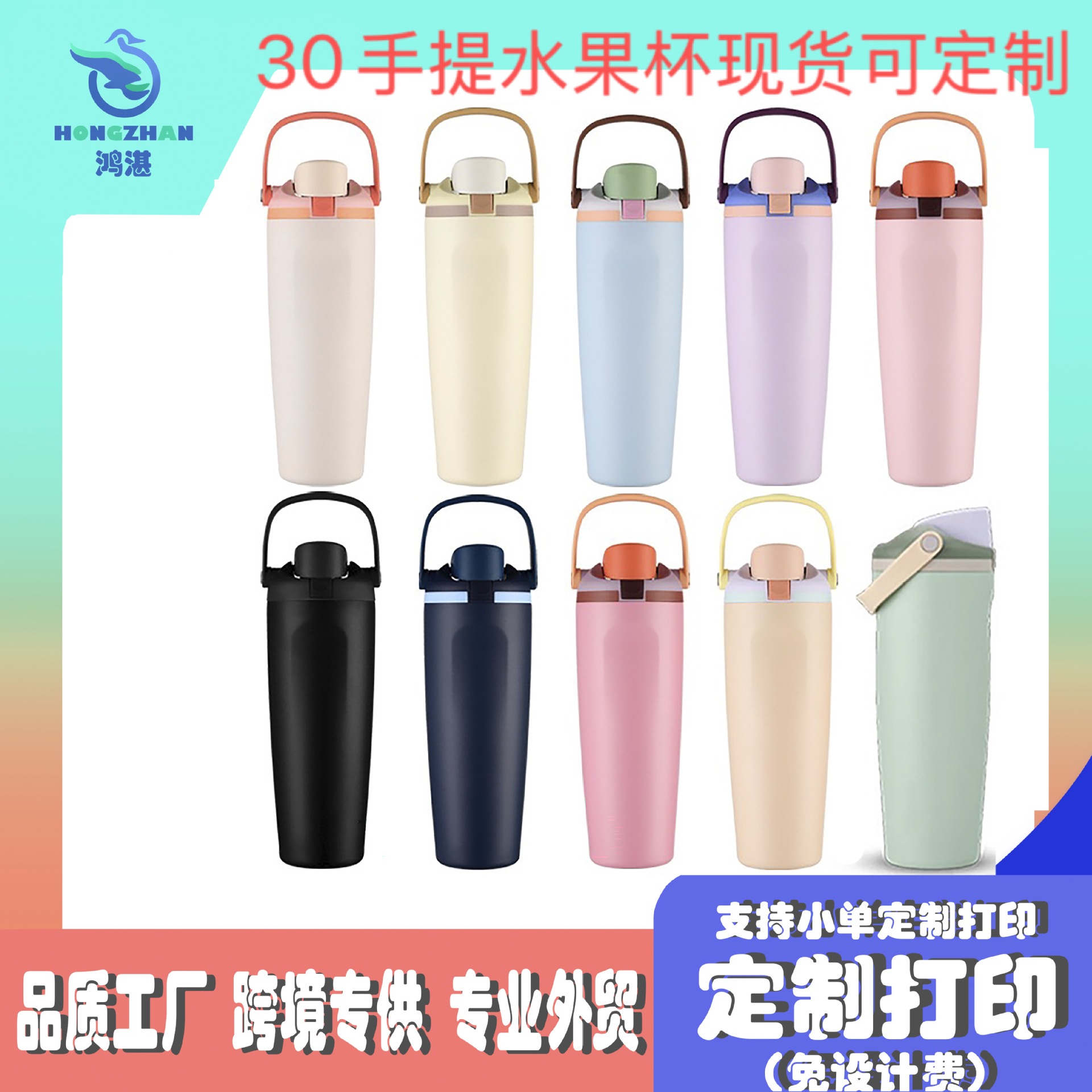 新型おしゃれ大容量保温カップ 車載用30オンス ハンドル付きフルーツカップ 304ステンレス製アイスカップ ダブルドリンク ストロー付き