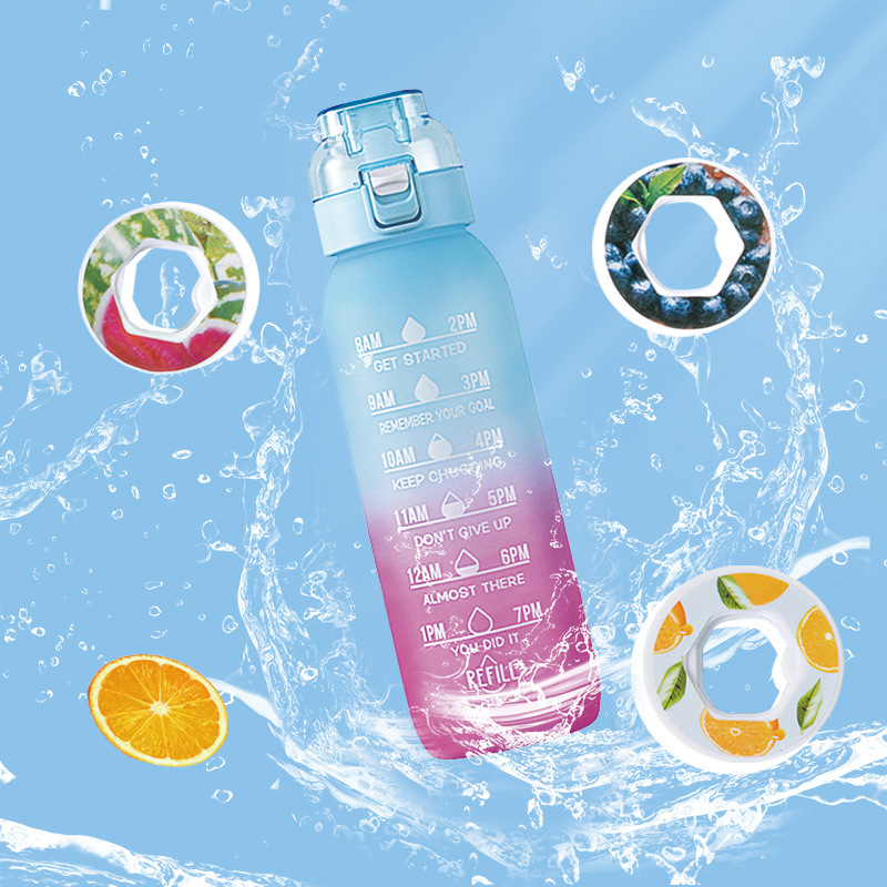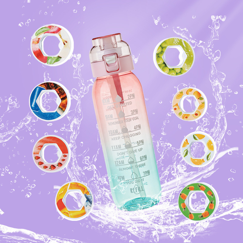 香り付きカップ 1000ml、8個の遊び心あふれるクリエイティブなウォーターカップ、トリタン製、夏のスポーツカップ、高見え、大容量