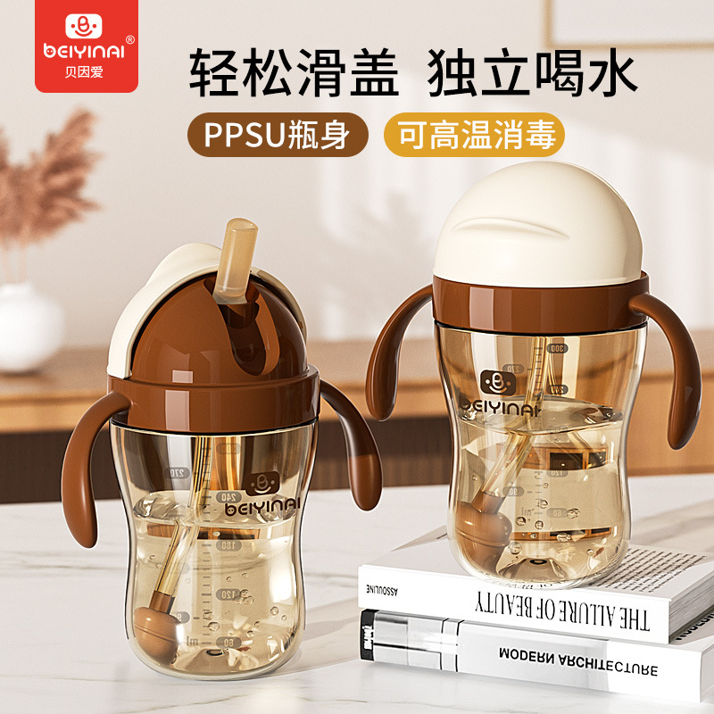 Beinai 広口 7.2 センチメートルベビー PPSU/PP スライド蓋ボトルストローカップ学習ドリンクカップ漏れ防止と窒息防止 300 ミリリットル