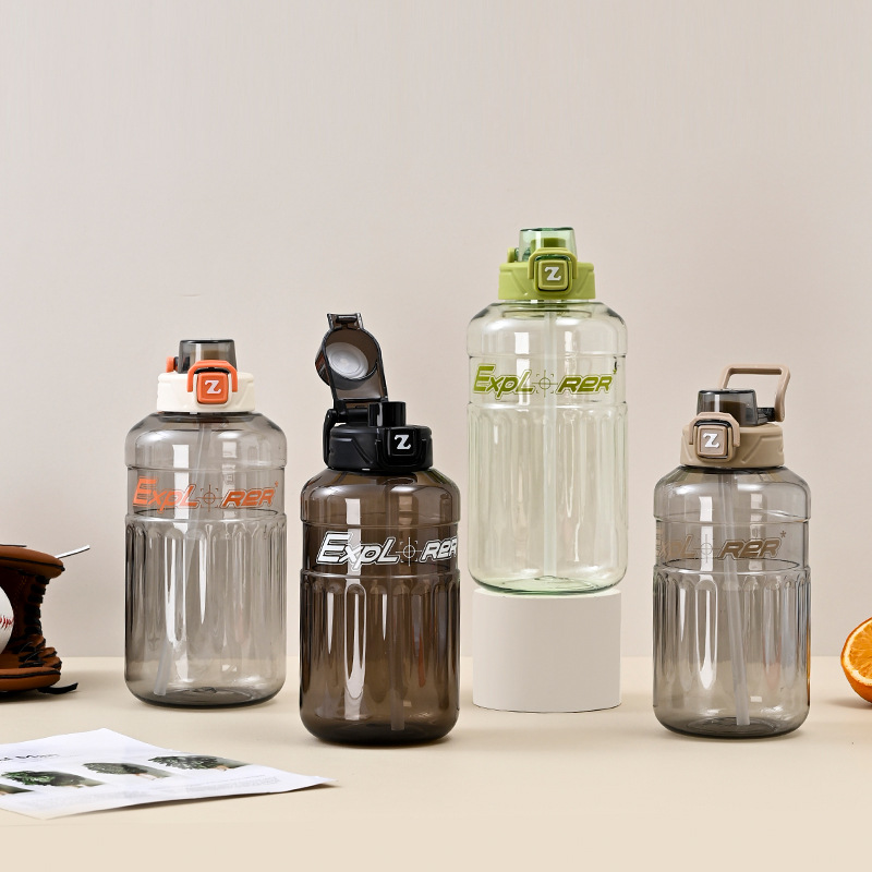 大容量プラスチックスポーツ学生屋外大容量ポータブルカップ透明直飲ストローカップやかんフィットネスカップ