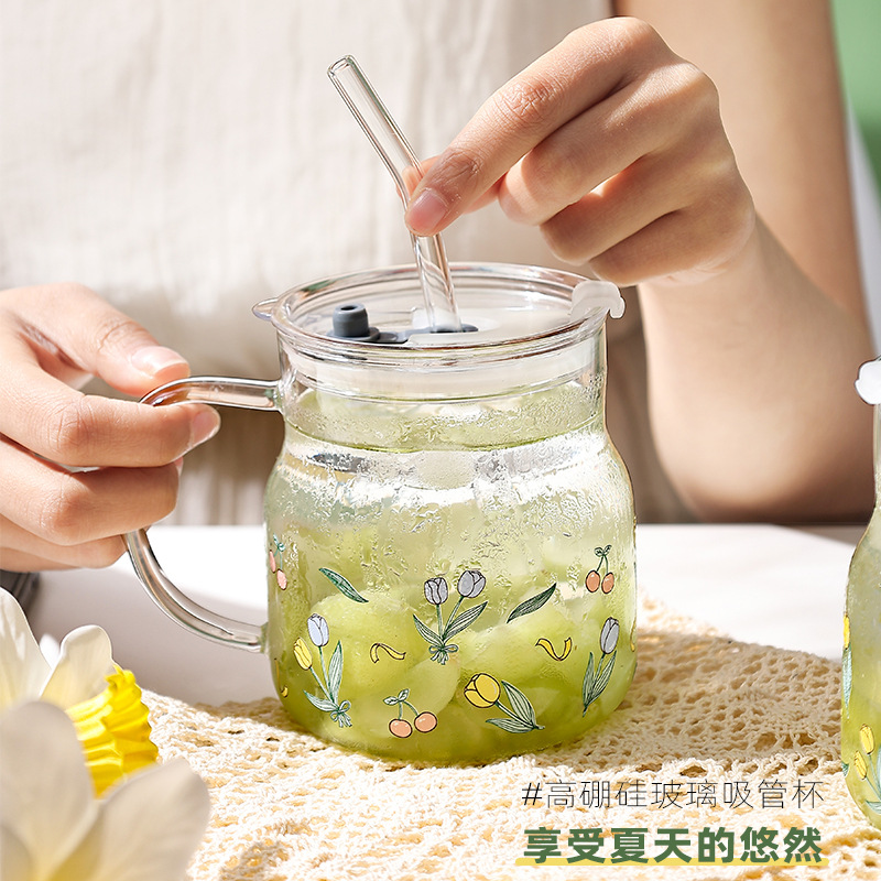 ガラスストローカップオフィス家庭用チューリップメイソンカップins高颜値耐高温高ホウ素シリコングラス