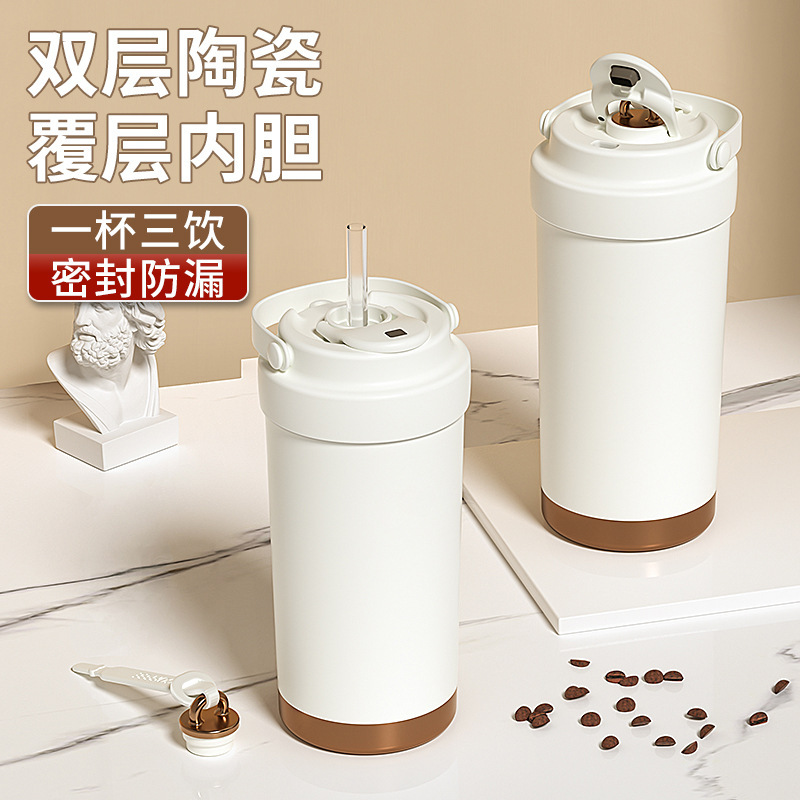 新型大容量ストローカップ316ステンレス保温カップ女子学生高颜値屋外携帯自動車カップ