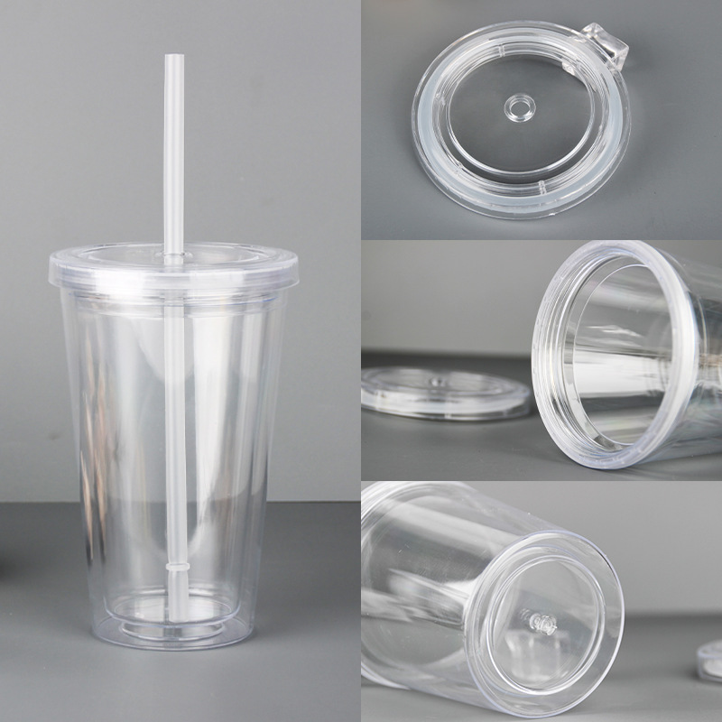 16オンスの二層プラスチックコールドドリンクストローカップPS/AS素材のシンプルな透明広告カップは、カードを挿入してロゴを設定できます