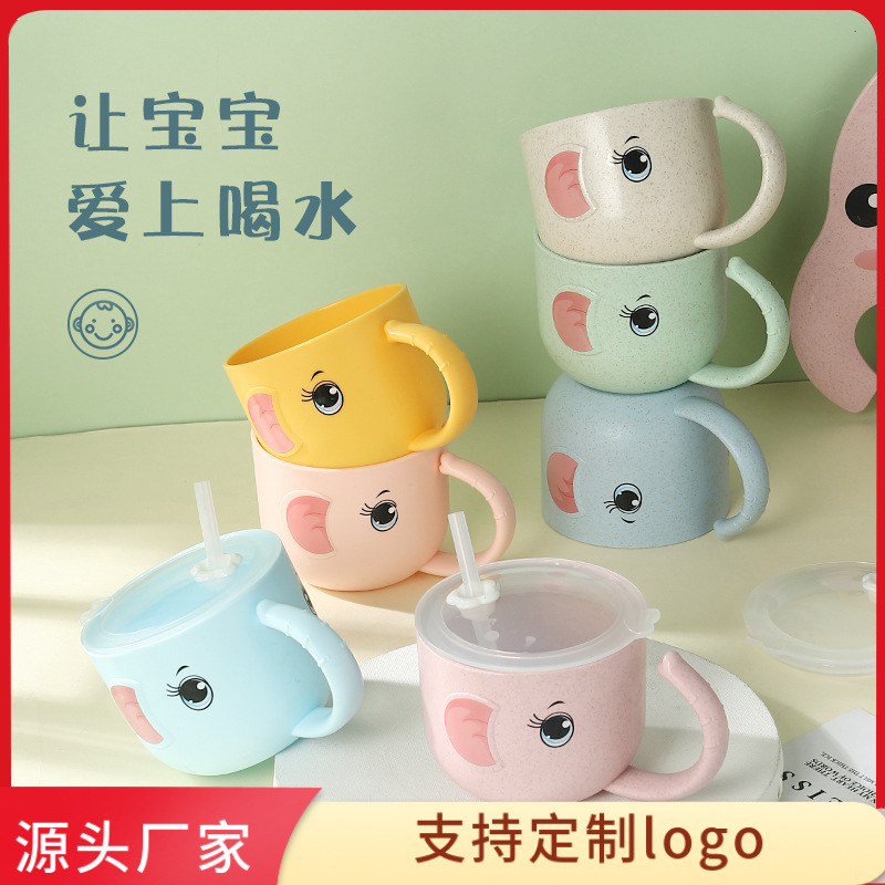 漫画小麦わら象コップ蓋付き子供ストローコップ幼稚園家庭用牛乳カップメーカー