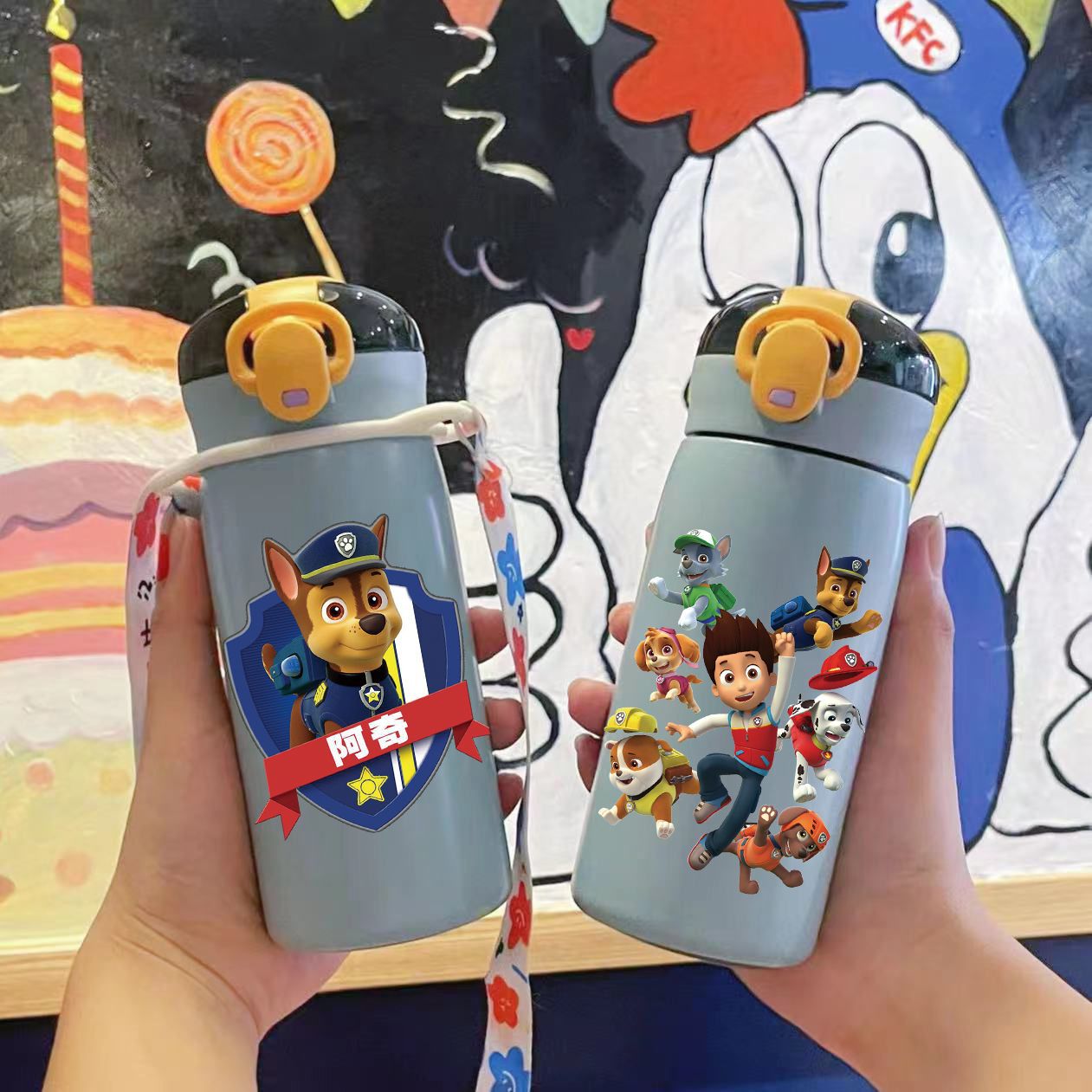汪汪隊の子供の新型のコップのステンレスの保温カップはストローのコップを持って転び防止して高温に耐えます。
