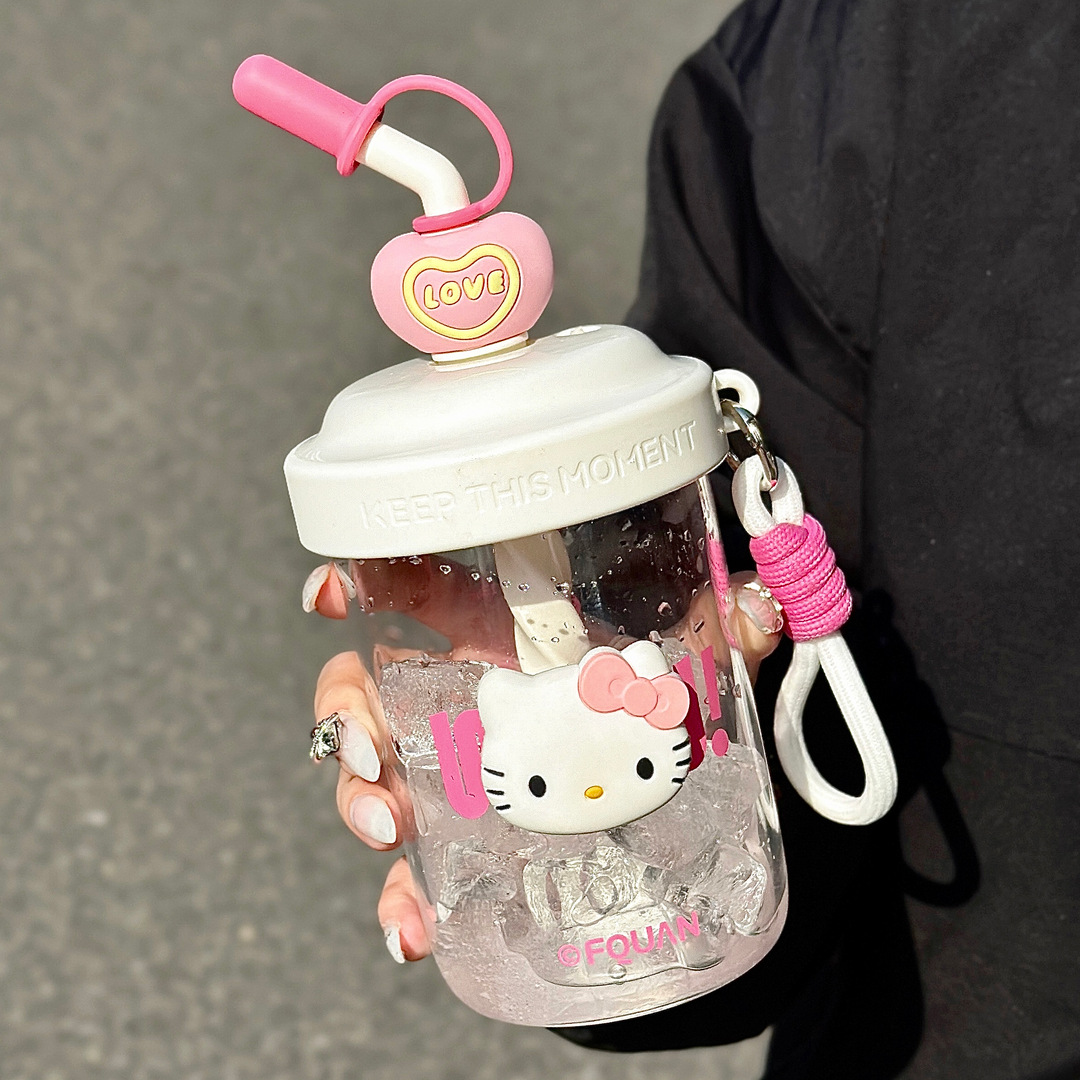ハローキティ透明撹拌ストローカップ女子高颜値スケールカップ2025新型携帯可爱いカップ