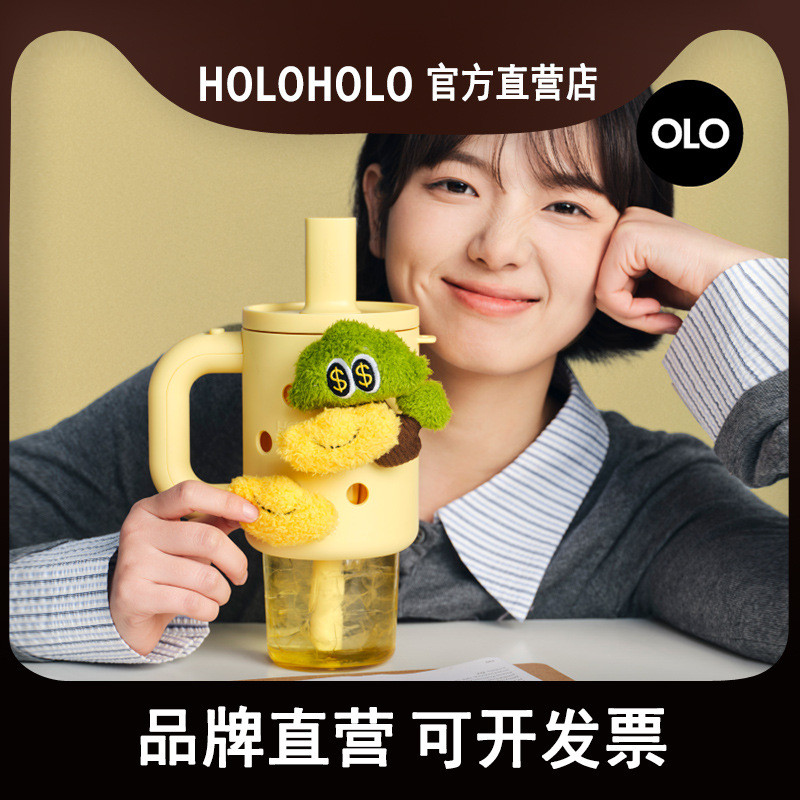 Holoholo洞ストローカップ女の子大容量プラスチックオフィス高颜値夏ビッグマック水カップ
